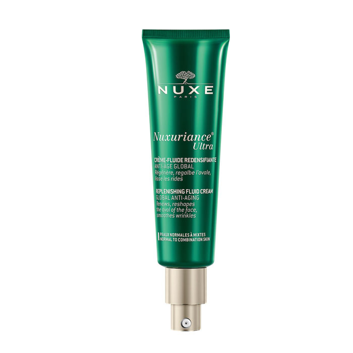 Αντιγηραντική κρέμα ελαφριάς υφής ολικής αντιγήρανσης Nuxe Nuxuriance Ultra Creme-Fluide Redensifiante 50ml για την ώριμη επιδερμίδα. Aντιμετωπίζει τις ρυτίδες, επαναφέρει την πυκνότητα και την ελαστικότητα της επιδερμίδας ενω επανασχηματίζει το οβάλ του προσώπου.Το φυτικό σύμπλοκο μπουκαμβίλιας -άνθους κρόκου συμβάλλουν στην αναγέννηση και αναζωογόνηση των κυττάρων λόγω της ορμονικής γήρανσης επιταχύνοντας την δημιουργία νέων κυττάρων. Ο θαλάσσιος πολυσακχαρίτης συσφίγγει τους διεσταλμένους πόρους και το εκχύλισμα από βιολογικά πέταλα παπαρούνας ενυδατώνει την επιδερμίδα. Για μικτή και κανονική επιδερμίδα για ματ αποτέλεσμα 50+. Το 89% των συστατικών είναι φυσικής προέλευσης.